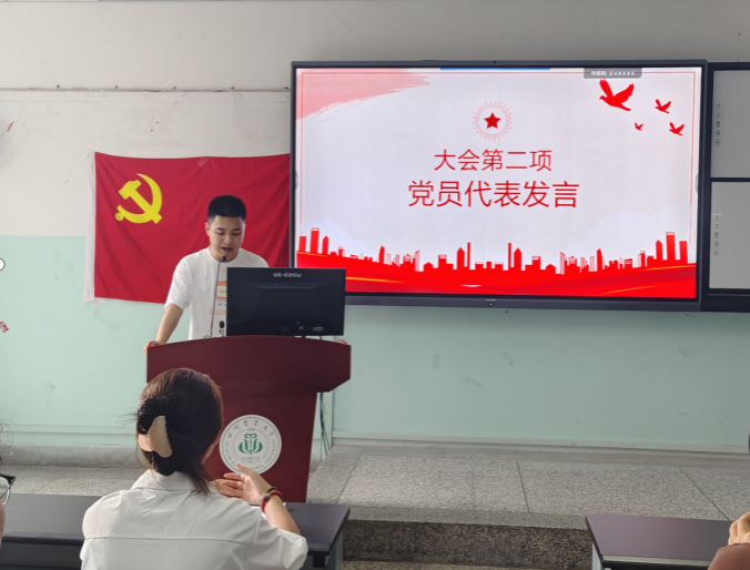党员代表赵冠西同学分享成长感悟。他结合自身向党组织靠拢的经历,勉励学员们,冲在前,干在先,用实际行动诠释全心全意为人民服务的宗旨。他强调,党员的先进性不仅体现在思想上,更要彰显在实践中。