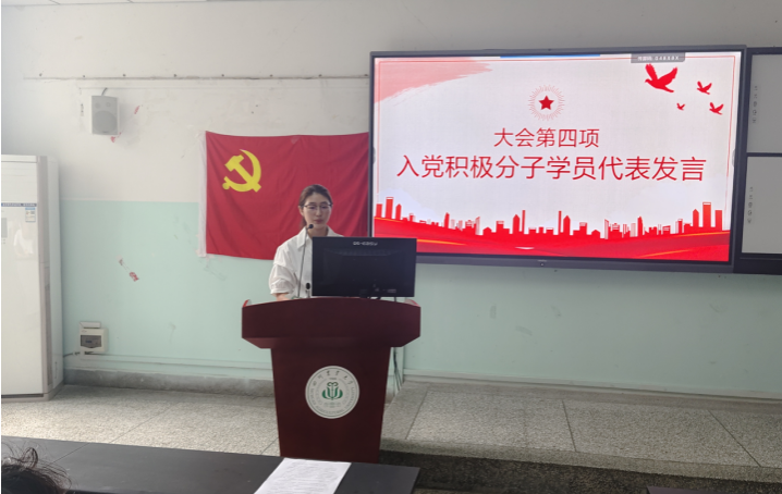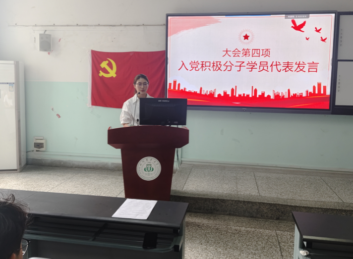 入党积极分子代表王亚芸同学作表态发言。她怀着激动的心情表示,能够参加此次培训既是荣誉更是责任。她代表全体学员承诺,将以“求知心”学理论,以“实干心”践初心,以“敬畏心”守底线,争取早日达到党员标准。