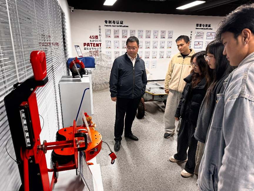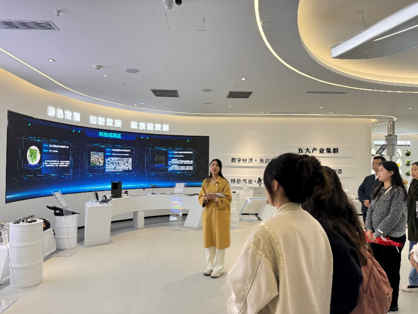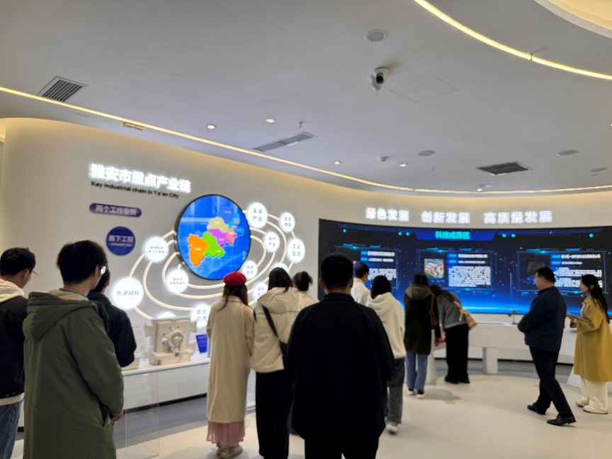 活动首站走进雅安科技创新综合体,在雅安市文旅融合发展中心党支部党员的引导下,师生们系统了解了该综合体在智能装备制造、新材料、电子元器件三大主导产业的布局与发展,现场参观了科研成果展示区、智能制造实验线及新材料创新平台,深入了解了雅安在推动未来产业、构建科技创新生态中的最新成果。