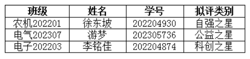 本着公平、公开、公正的原则,经学生本人申请,学院审核、评选并广泛征求意见,经学院学生奖励及资助工作评审委员会研究决定,现将学院2024-2025学年寒梅飘香工程“自强之星”“公益之星”“科创之星”拟推荐名单公示如下。